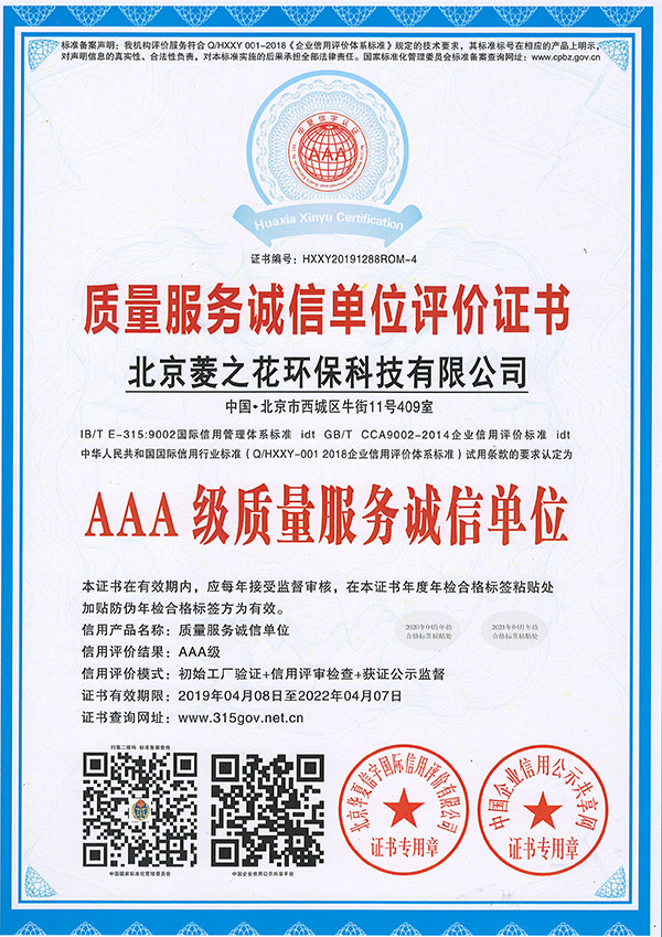 • 質量服務誠信單位評價證書